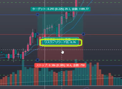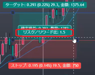 Trading Viewのリスクリワードを測るツールでリスクリワードを測ると…