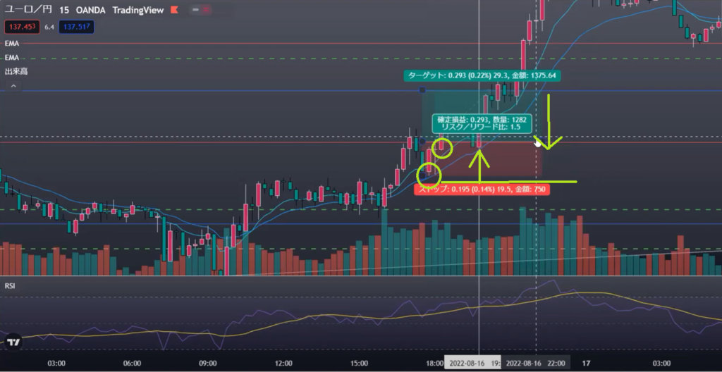 (※リスクリワードってなんだっけ?と思った人はエントリーの条件3「初期設定損切までの値幅より利確までの方が多いこと」を確認してくださいね。)